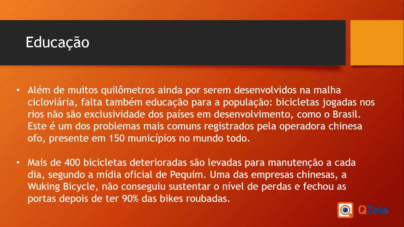 Em consonância com as demandas das ciclovias e de outras questões de zeladoria urbana, o aplicativo gratuito QZela oferece ao usuário a possibilidade de reportar qualquer tipo de problema nas vias e ciclovias, incluindo buracos, queda de galhos ou árvores, sujeira, má sinalização ou situações de degradação.